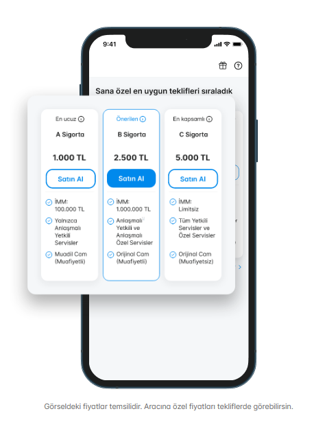Yenilenen yapay zekâmızla, onlarca sigorta teklifi arasından ucuzunu, sana uygununu ve kapsamlısını buluyoruz. Net teminatlar ve net fiyatlarla kararın hep net olsun.